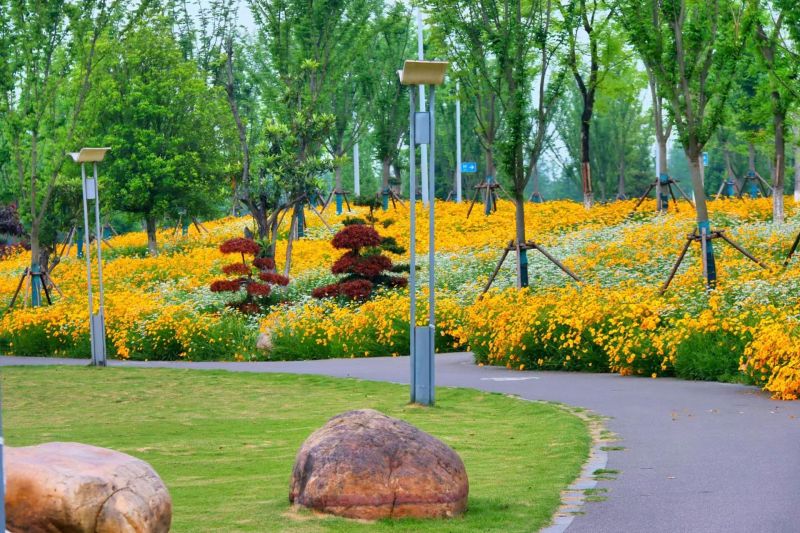 进入5月以来,白鸭寺公园里的金鸡菊、小雏菊、月见草同步盛开,让整个公园仿佛是一片花的海洋,整片整片傲然绽放,组成了一幅精美绝伦的画卷,置身其中,让人浮想联翩。花海内还铺设了一条条小路,在小路上行走,观赏花海,十分惬意。
