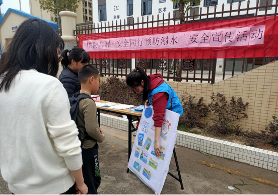为有效防止儿童溺水事件的发生,织密织牢保障生命健康安全的保护网,畲江镇社工站于2024年04月09日在畲江镇中心小学门口开展“共防共治安全同行 预防溺水”防溺水安全教育宣传活动。
