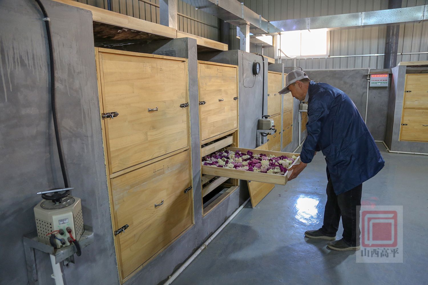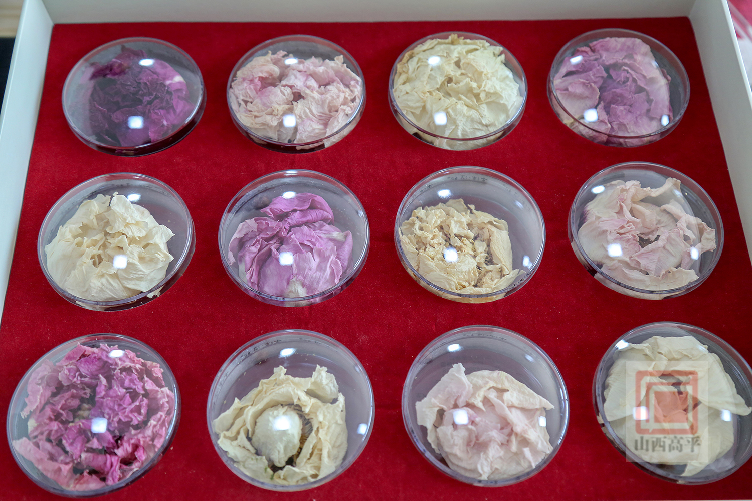 制作花茶最关键的工序便是古法高温炕花。在炕花车间,成排的火箱花香四溢,炕花师傅王云伟正细致地对火箱的温度进行调试,并不时观察箱内状态。“古法高温炕花工艺属于非物质文化遗产,在牡丹的挑选上,比较优越、能食用的也就是紫斑牡丹和丹凤牡丹两种可以炕花制成花茶,且火箱的温度或高或低都不适合牡丹制茶,所以我们需要不断调试温度,才能保证制成的花茶既保留牡丹形态,又能兼具卓越口感与健康功效。”王云伟一一向我们介绍道。