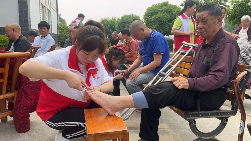 随后,红十字会志愿者到顾家店镇福利院开展志愿服务活动。志愿者为老人洗头剪发、修剪指甲,为卧床及行动不便的老人打扫房间、清洗衣物,陪老人唠嗑家常,询问老人的需求和困难,并送上慰问物资。志愿者用贴心的服务让老人们感受到了红十字会的温暖和关怀。
