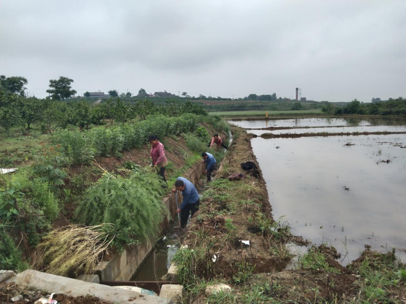 在黄金村一组涂家畈湾落沟渠,村民们正在用铁锹清理渠道里的杂草残枝,“渠道疏通了,排水也通畅了,最近大家都自发过来一起清理水渠,看着环境变美了,我们看着也舒心。”一组村民鄢修伏说到。黄金村运用共同缔造理念,积极动员党员干部和群众的力量,组织开展堰塘沟渠清淤行动,对村庄沟渠内的杂草、污泥、垃圾等进行全面清理。