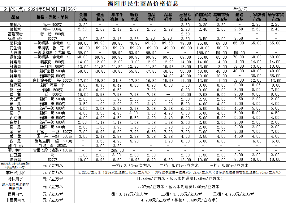 【物价】 2024-5-8衡阳市民生价格信息