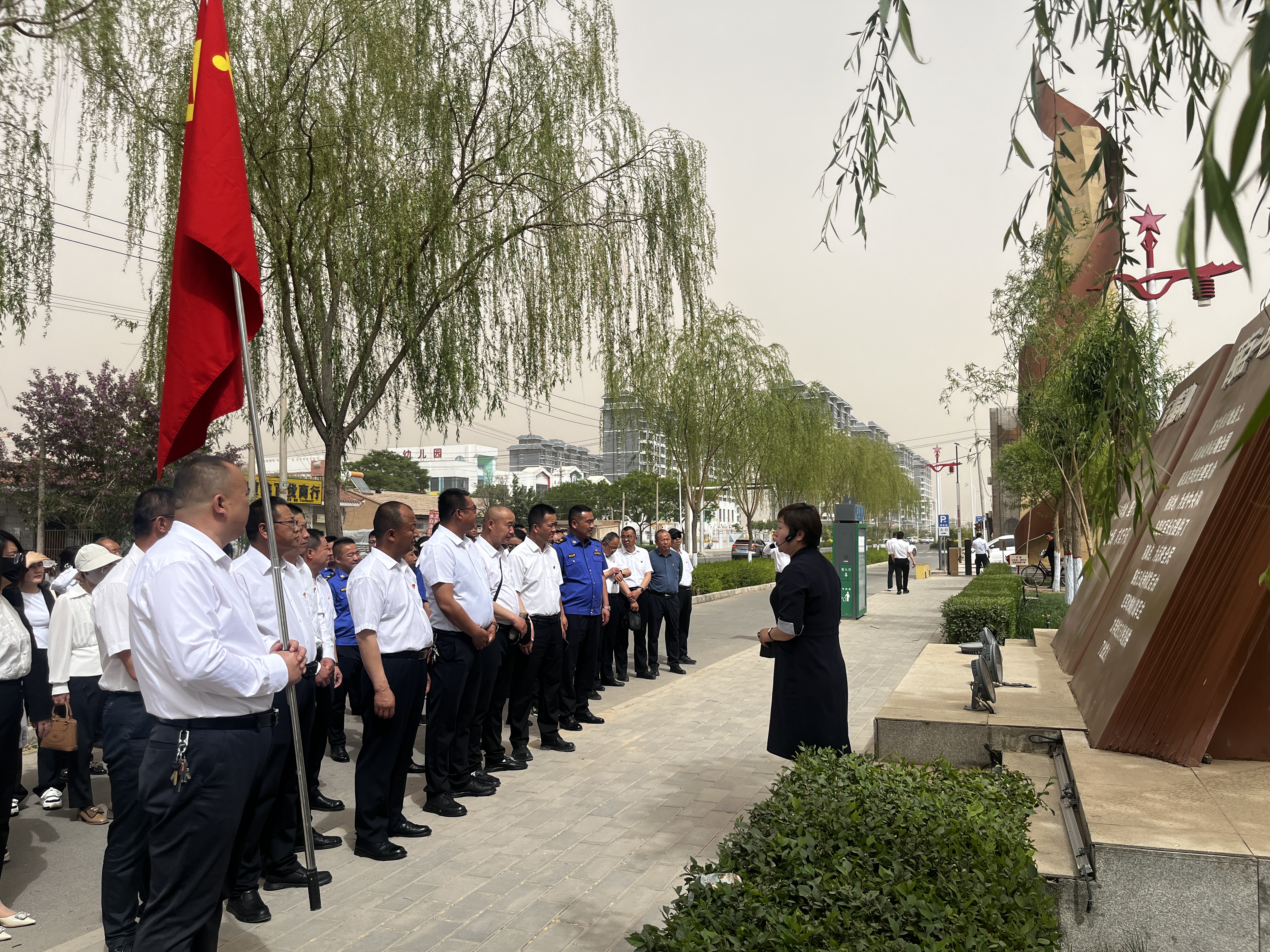 集中学习完后,全体党员齐聚西路军主题公园东入口处,住建局负责人介绍了西路军主题公园的建设历程及重要意义。随后,在讲解员的引领下,党员们深入参观西路军主题公园,沿着历史的足迹,从三军会师到西路军的组成,从血战高台到转战祁连,大家一边认真聆听讲解,一边仔细观摩,一路学习、一路思考、一路交流。在参观过程中,党员们对西路军血战高台的悲壮历史有了更为深刻的认识,被红西路军英勇无畏、顽强拼搏的精神深深打动,内心受到了极大的震撼和激励。