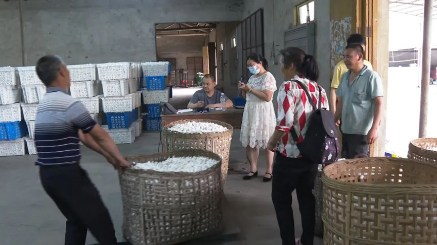 蚕农邱德荣说:“我卖了128斤,得了4000多块钱。我养了十几年蚕,种有四亩多桑,每年可以得到5万块钱左右。”