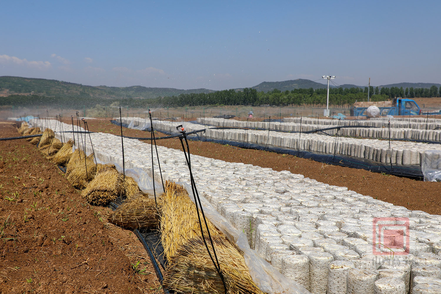 基地技术人员郝占成介绍说:“木耳适合在温度15℃-25℃、空气湿度85%-90%的环境中生长。当前正是培育木耳的最佳时节,我们引进了一批菌棒,10亩露天黑木耳菌棒的摆放工作已全部完成,正在进行浇水管护。9栋玉木耳菌棒正在挂棒,预计10天左右可完成挂棒工作。”