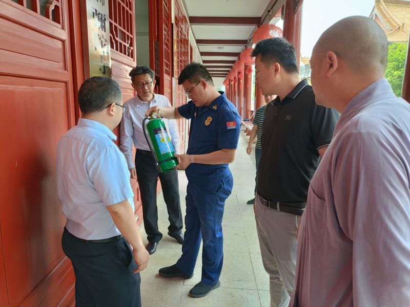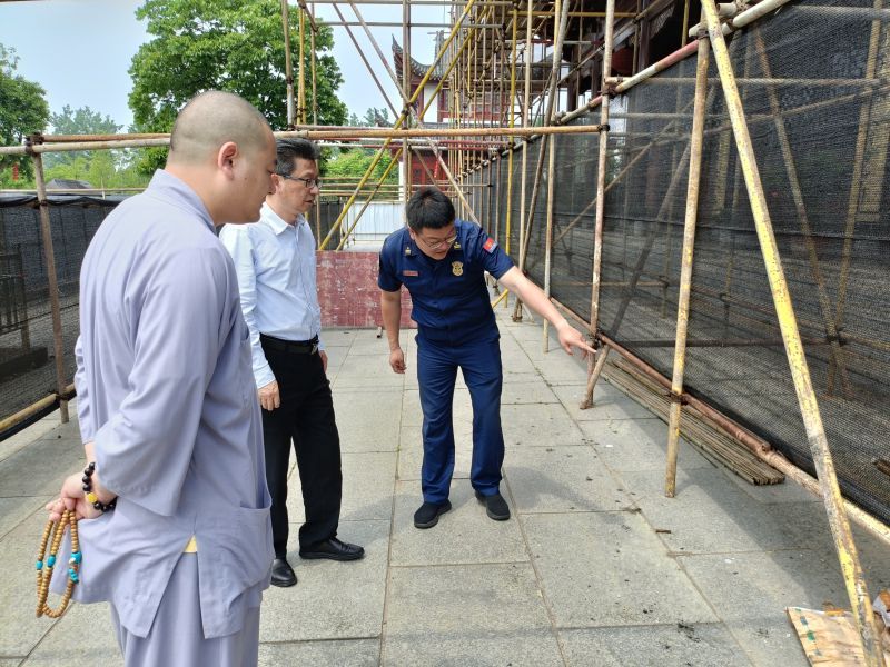 在弥陀寺、水府庙等木质仿古建筑场所,检查人员实地查看了修缮施工现场、建筑内部及周边环境,重点对各场所的消防安全制度落实、用火用电用气管理、消防设施器材配备、疏散通道和安全出口设置、施工现场安全防范以及燃烛焚香是否在指定区域、香烛存放是否符合要求等情况逐一进行排查检查。针对检查发现的隐患问题,检查人员当场向场所负责人进行反馈和指导,要求各木质仿古建筑场所负责人要严格落实消防安全管理责任,积极整改火灾隐患,加强日常防火巡查检查,定期组织开展人员消防安全培训演练,尤其是要加强电源、电气线路敷设及施工现场动火用电管控,采取有效防范措施做好木质仿古建筑的火灾防控工作,严防各类火灾事故发生。