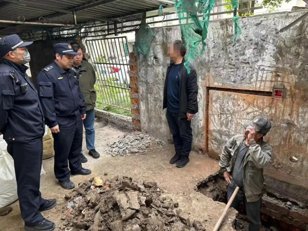 近日,新成路街道南陈小区物业工作人员在日常巡查时发现,一户正在装修的业主不仅在庭院围墙上敲开了一个大洞,还在院子里挖出一个大坑。物业公司随即将情况告知居委,并上报新成路城管中队。