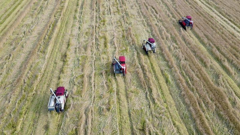 段小相是老把式,一番熟练地操作,不出一个小时,5亩地就收割完成了,效率是人工收割的几十倍。