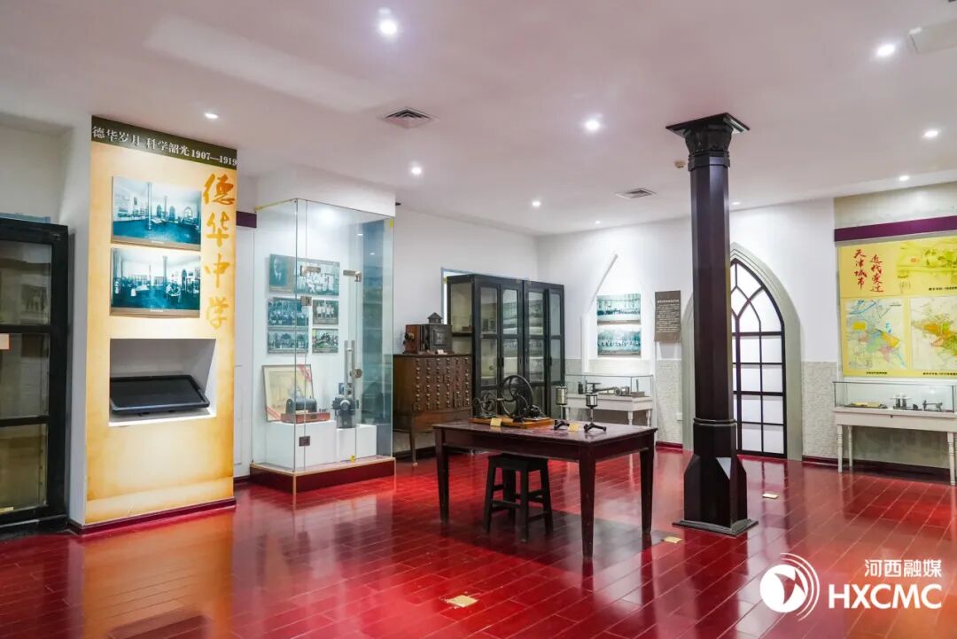 打开海河中学教育博物馆的大门,一股尘封的木质香味扑面而来,映入眼帘的是德式风格的装修和布局。海河中学团委书记、历史教师段帅帅介绍,这是仿制百年前德华普通中学堂实验室的实景。