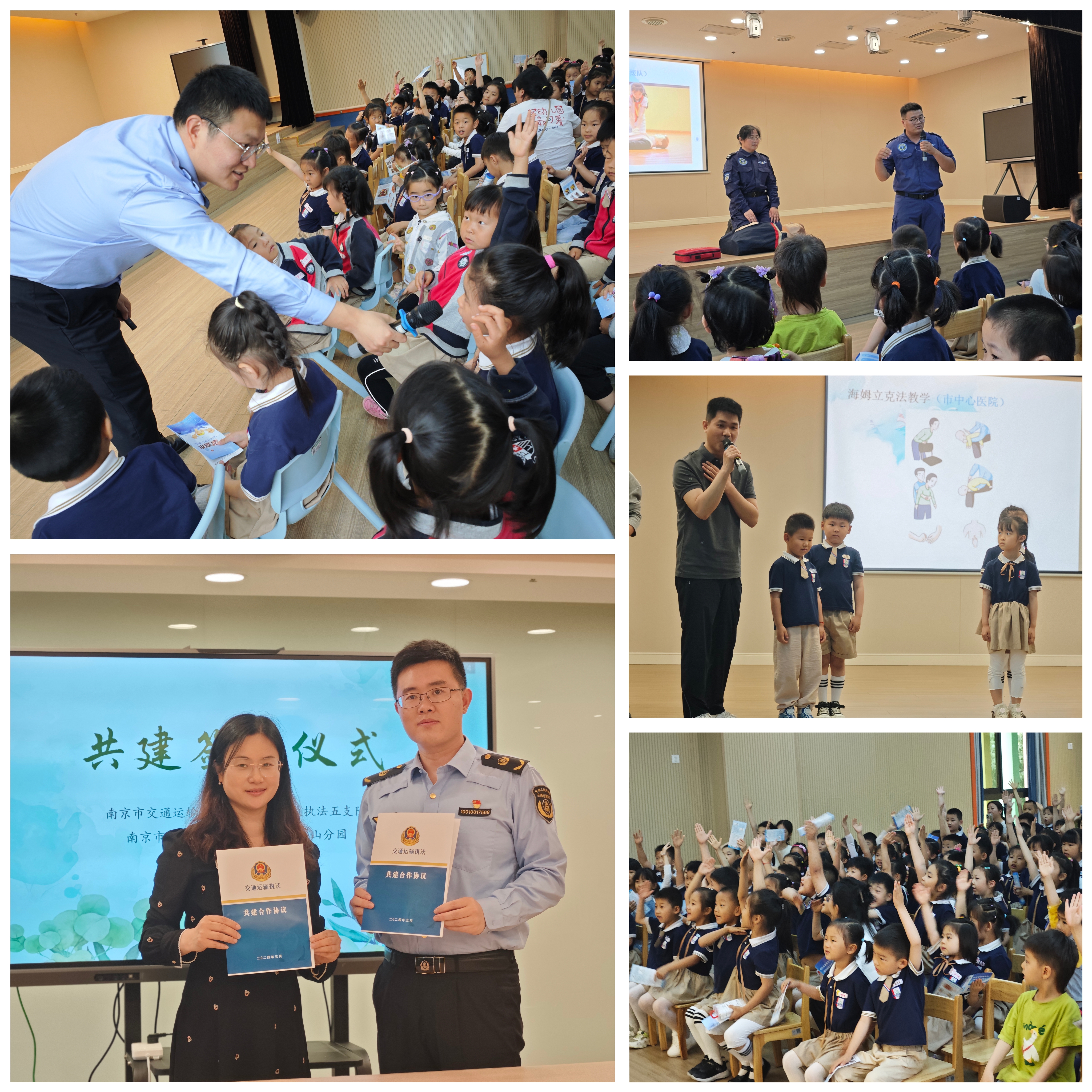 为增强师幼的安全意识和自我防护能力,预防和减少水上意外事故的发生,创建安全教育新模式。5月27日下午,南京市交通运输局综合执法局五支队联合南京市中心医院和南京曙光救援队,共同走进迈幼嘉誉山分园,开展水上交通安全知识进校园活动。期间五支队与迈幼嘉誉山分园签订了共建合作协议,护航祖国“花朵”平安成长。