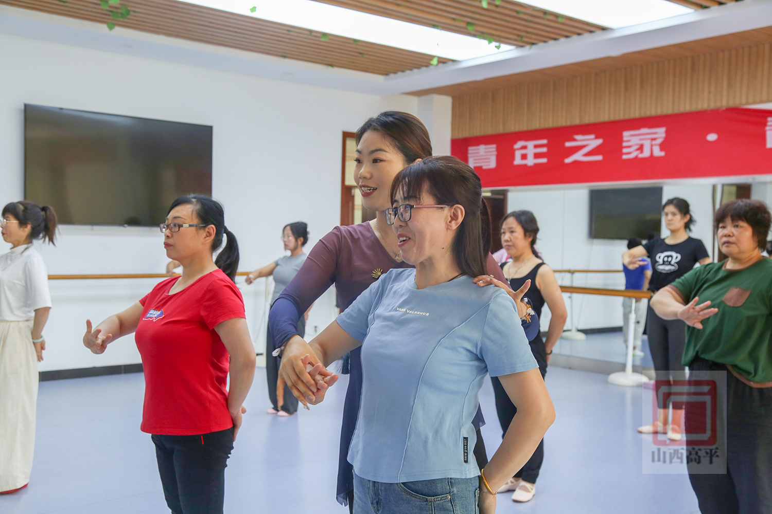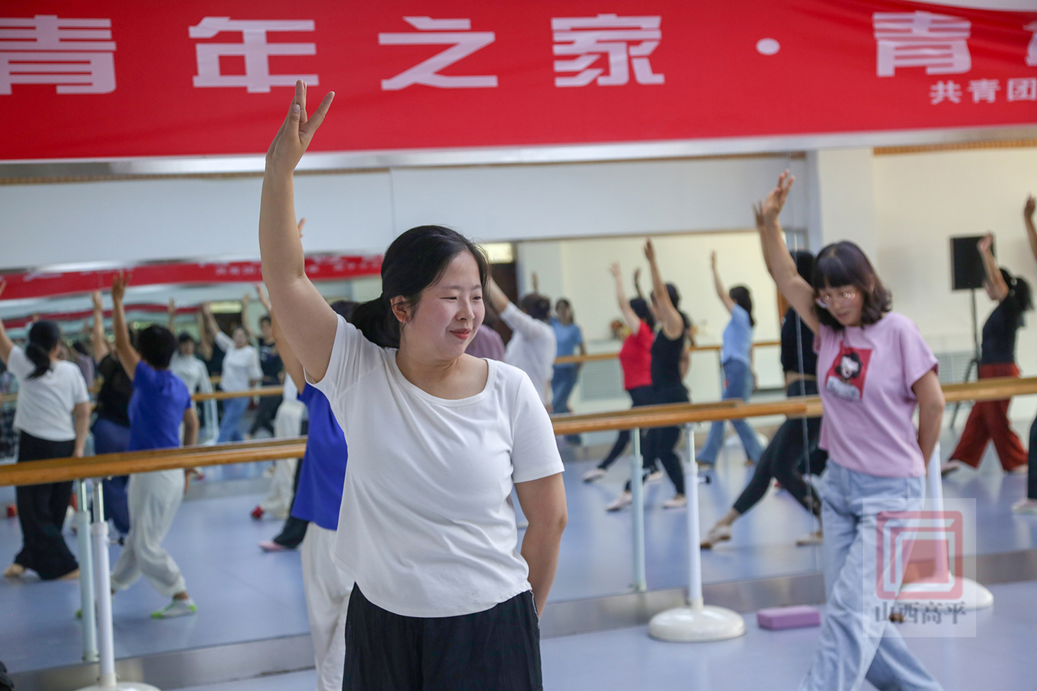 在民族舞教室,伴着轻柔的音乐声,40余名学员正跟着舞蹈老师认真地学习舞步的技巧和神韵,大家时而踮脚、时而展臂,优雅的舞姿舞出了民族舞的柔情含蓄,跳出了对美好生活的热爱。