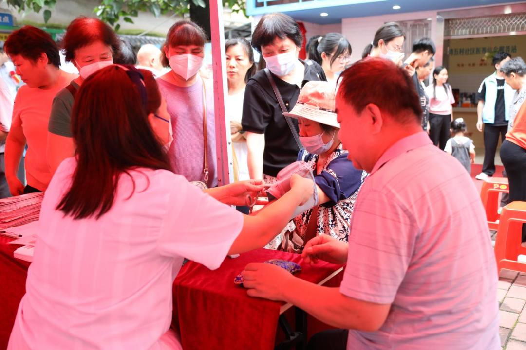 活动现场,街坊们在义诊摊位前排起长队,纷纷体验量血压、测血糖等项目。“以后上午来社区锻炼,中午在这里吃饭,有专家指导我们学习日常养生,很方便。”居民张姨了解到服务站的项目后开心说道。