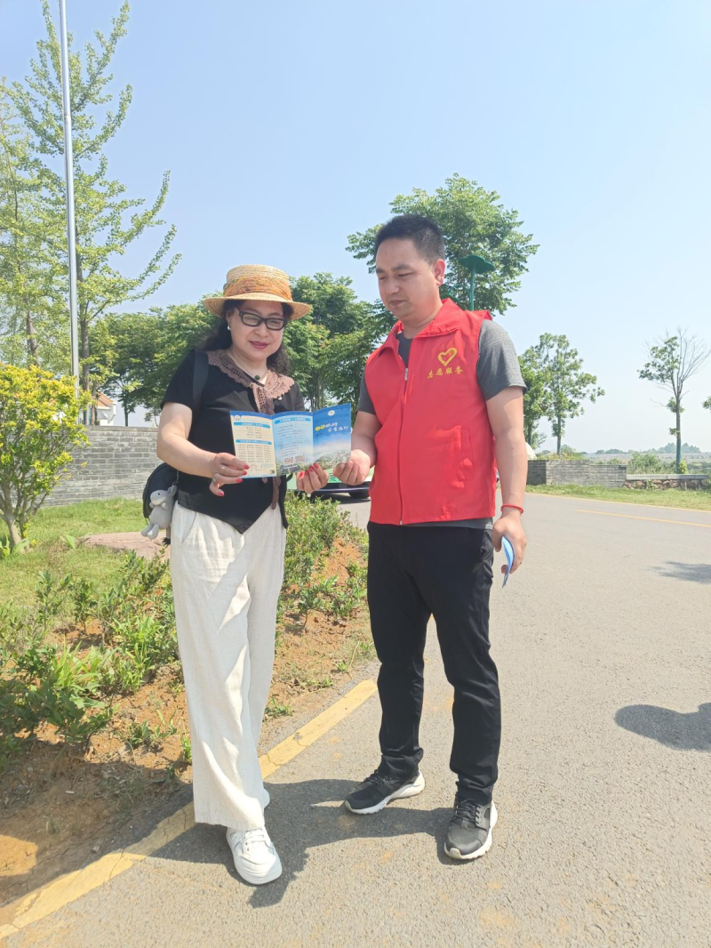 活动中,枝江文明旅游志愿者到枝江吉吉主题公园、枫林月季园等地开展文明旅游和安全出行宣传,为游客和市民发放宣传单。