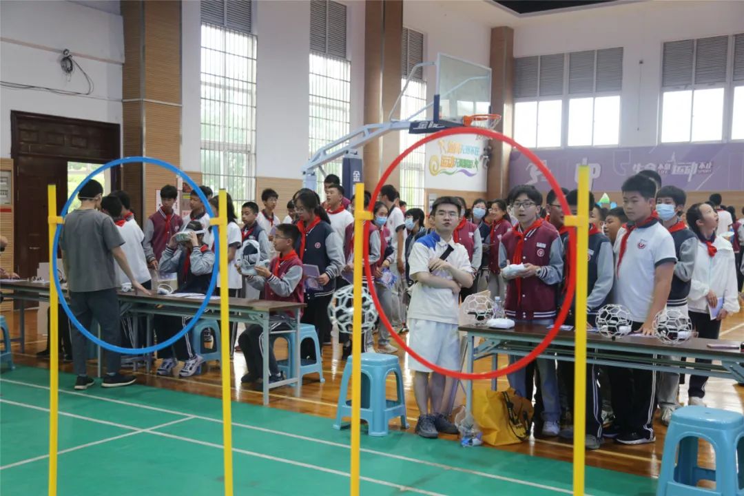 “蜻蜓”无人机在体育馆上空盘旋、机器人随着音乐激情舞动……精彩的科技展演拉开了科技嘉年华的序幕。学生们排着队、拿着游园卡,穿梭于各个摊位,兴致勃勃地投入各项科技体验项目中。
