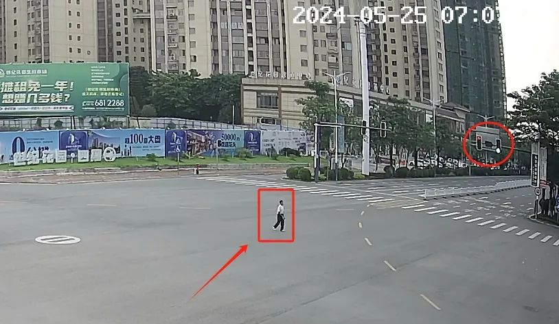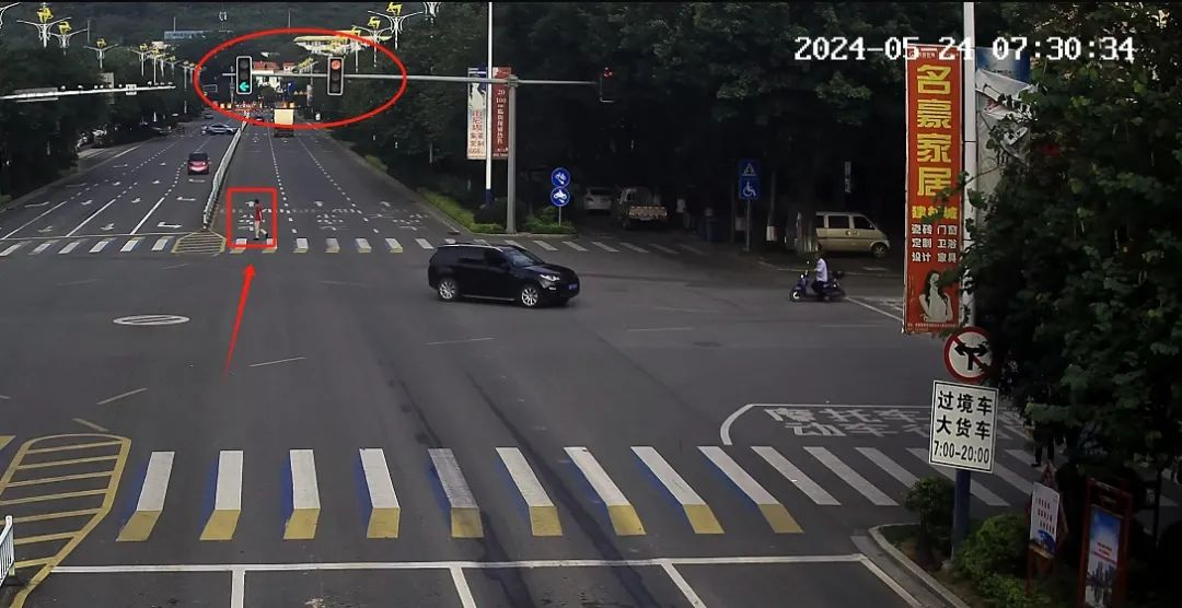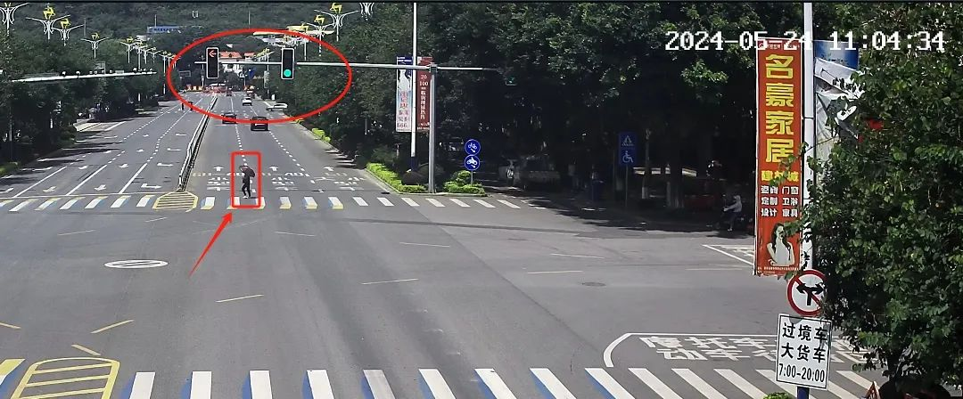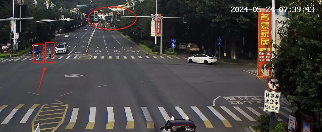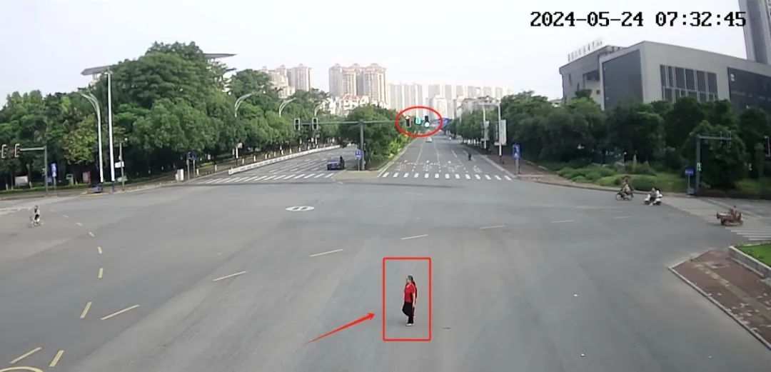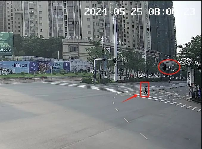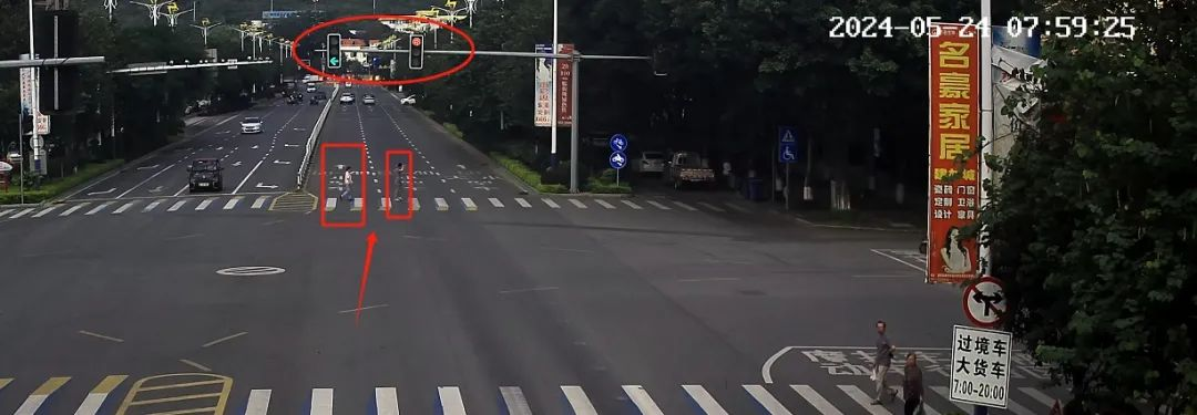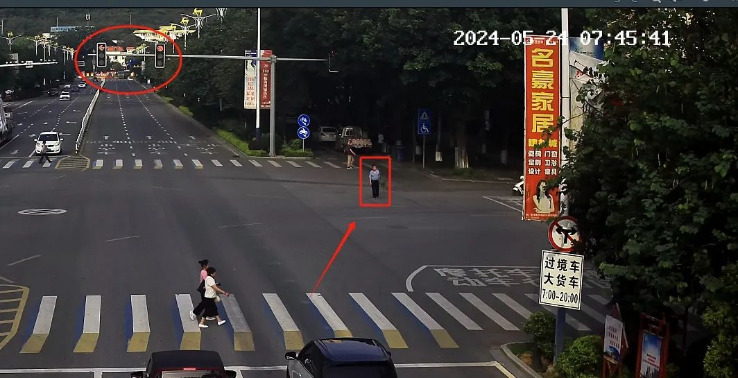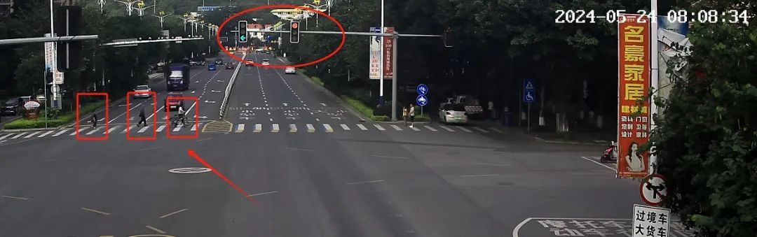 ⊙ 违法行为:行人闯红灯,不走人行横道