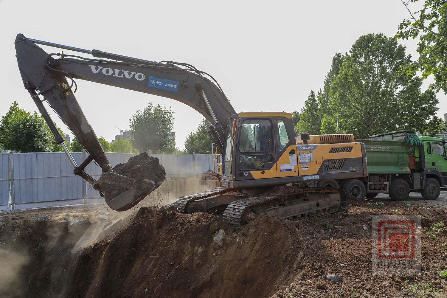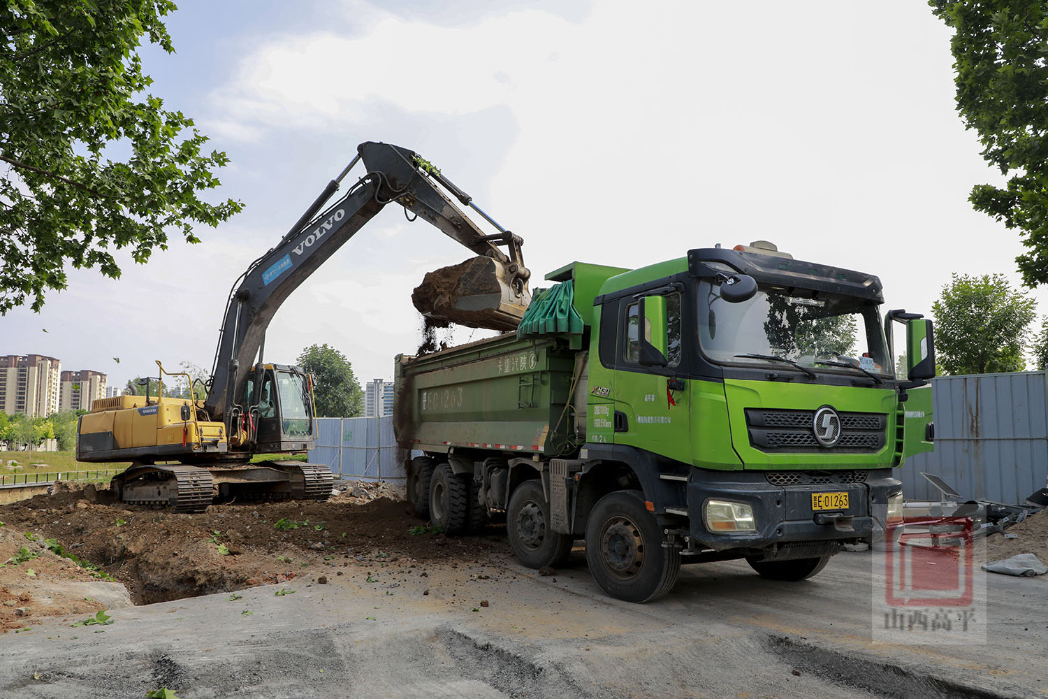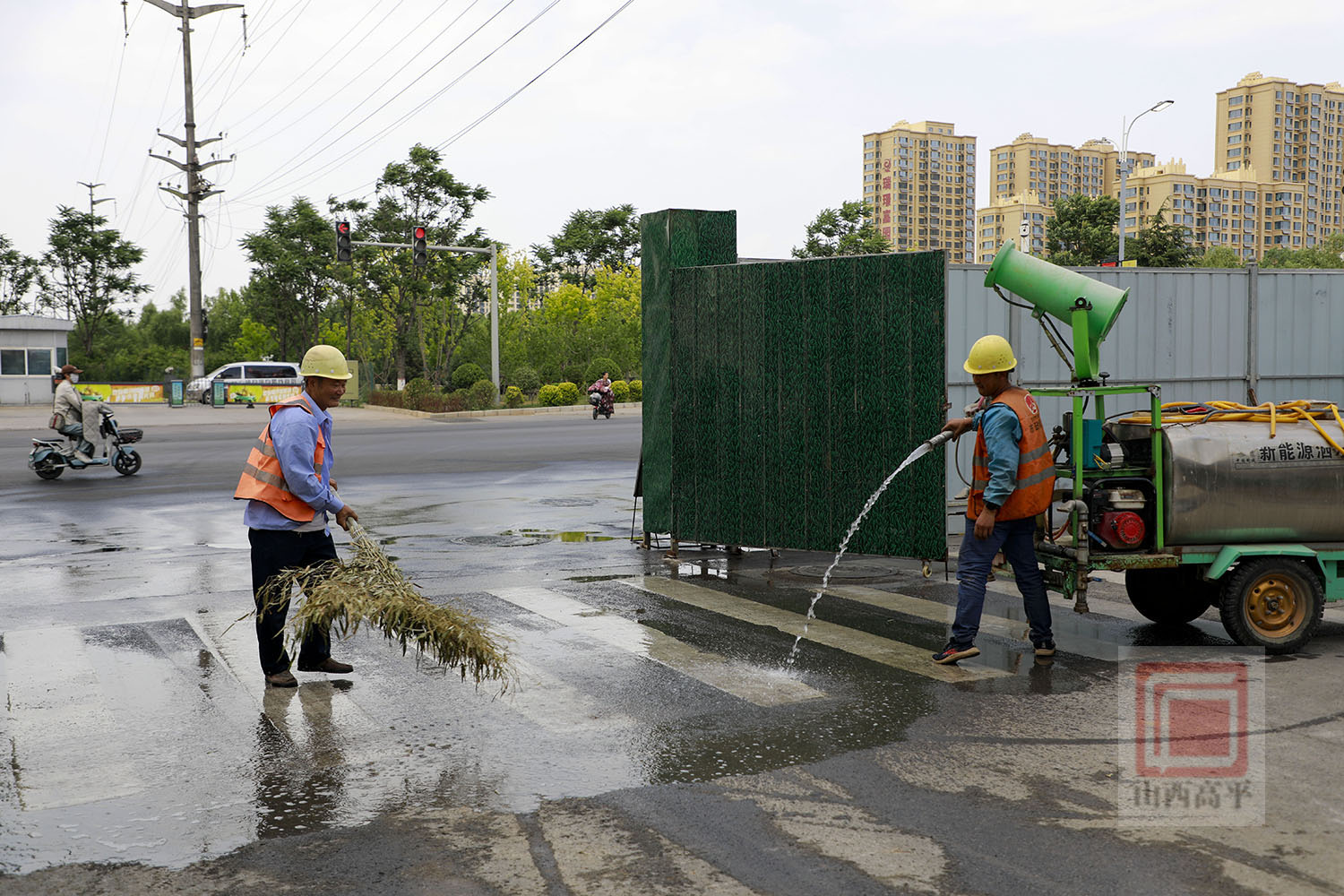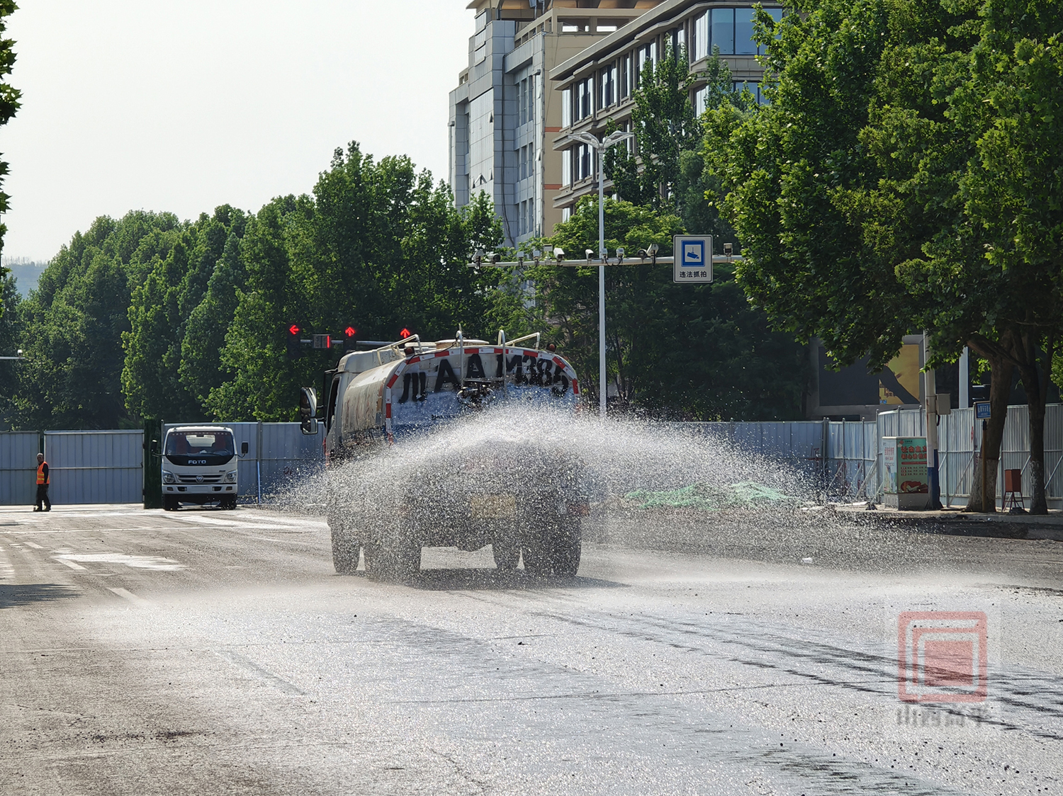 来到康乐东街段雨污分流改造现场,大型机械设备隆隆作响,工人师傅们分工协作,干劲满满,加快进行预制方沟盖板和开挖沟槽等作业。为确保环保施工,现场还配备了洒水车来回进行洒水降尘作业。