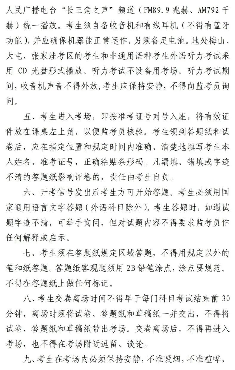 (3)6月8日下午外语笔试(含听力)科目考试,14:45起禁止进入考点,16:30后可提前交卷出场。