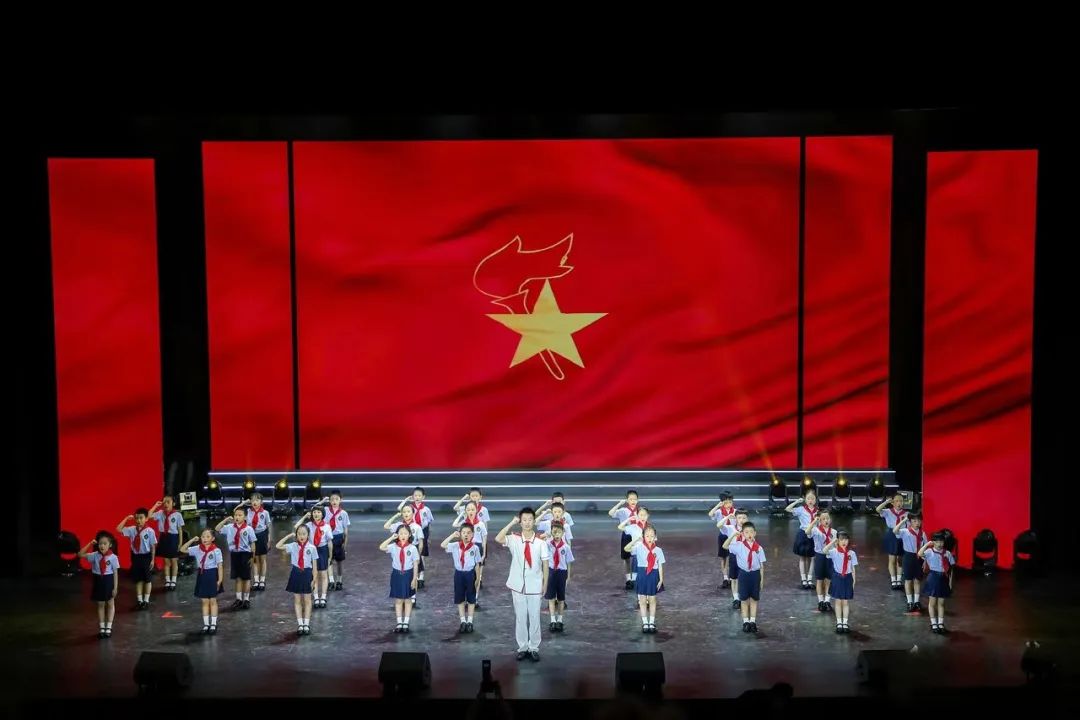 在激昂的出旗曲中,旗手们迈着整齐的步伐护持中国少年先锋队队旗进场。“准备着:为共产主义事业贡献力量!”新一批加入少先队组织的少年儿童,在队旗下为自己佩戴红领巾并庄严宣誓。