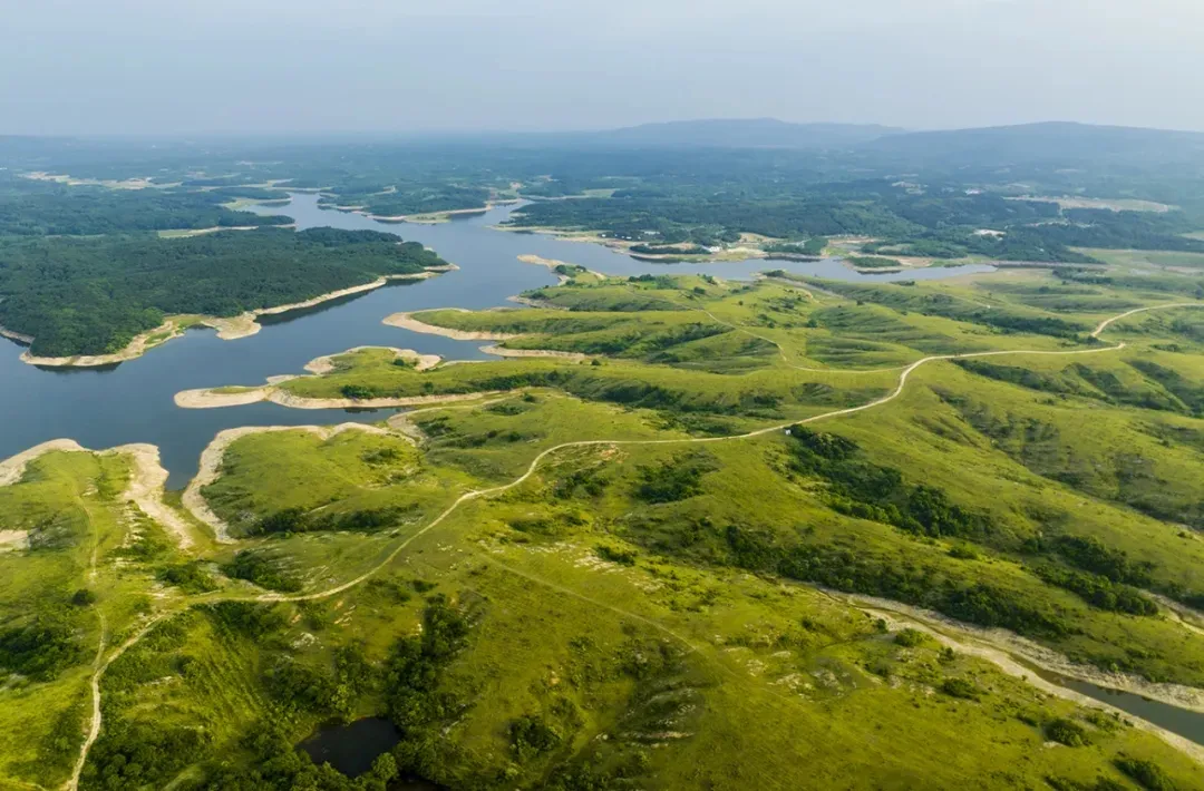 黄寨草原位于明光市跃龙湖畔,置身草场区域,只见岗岭逶迤起伏,丘壑纵横错落、舒缓有致。不时出现的黄牛、水牛成群结队悠闲吃草,兼有白鹭围绕在侧,宛若人间仙境。