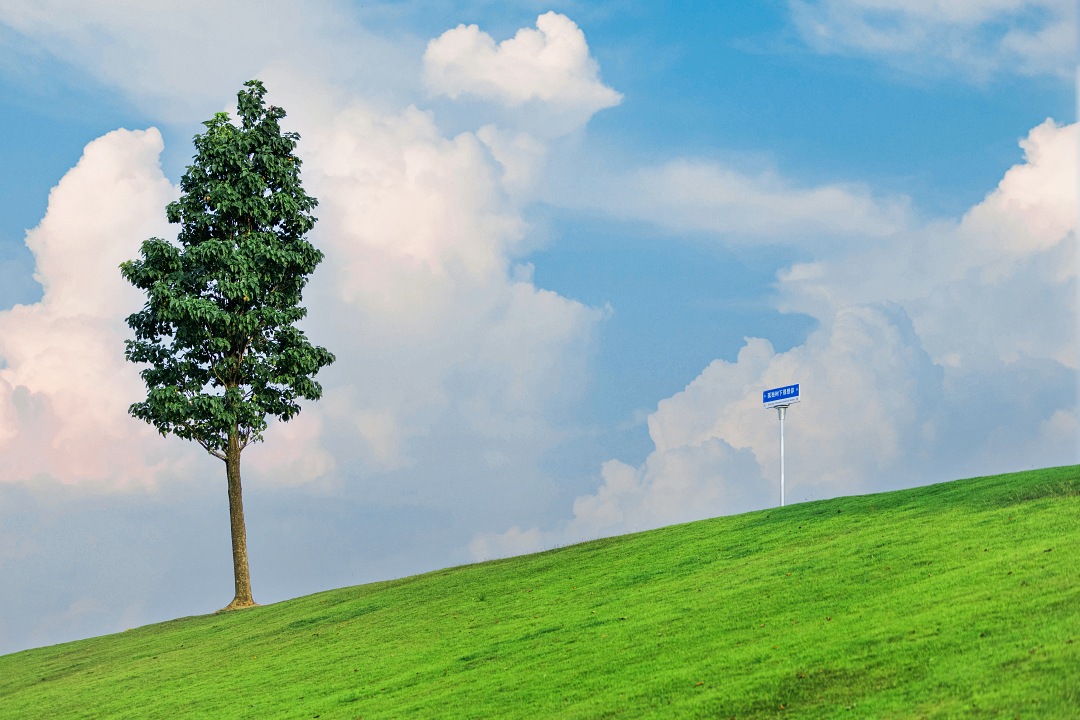 在金华高速路口旁,有着阿勒泰同款的绿色草坪,生机盎然,灵动又浪漫。蓝天下蔓延着明快的绿色,一眼看上去就透露出淡淡的清凉感,搭配上简约清透的朵朵白云,把金华的夏彰显得更加迷人。