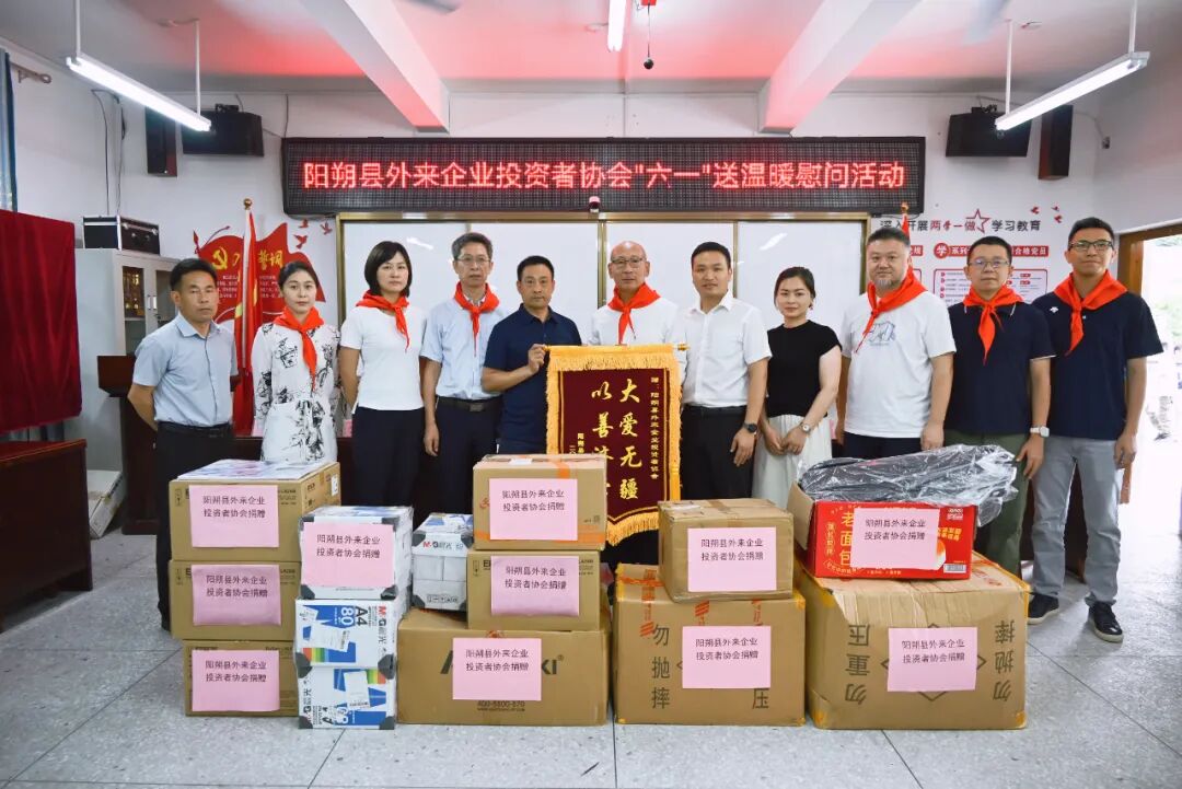 5月31日,阳朔县外来企业投资者协会到杨堤乡凤凰学校开展“六一”国际儿童节慰问活动。爱心企业代表向学校捐赠了打印机等办公器材一批以及篮球、排球、羽毛球拍等各类体育用品,鼓励孩子们勤奋学习、刻苦读书,祝福他们节日快乐、茁壮成长,同时也邀请了老师、同学们到他们的企业开展研学活动。