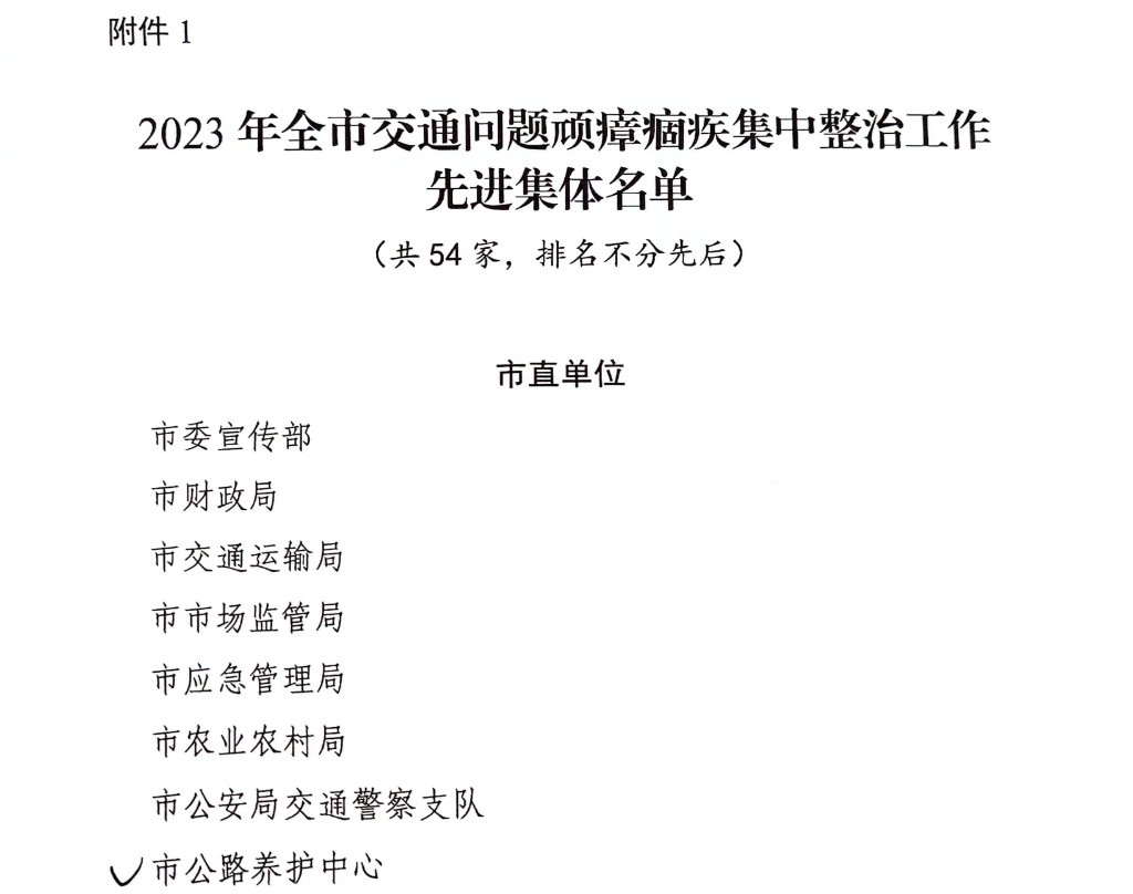 市公路中心获评全市交通问题顽瘴痼疾 集中整治工作先进集体