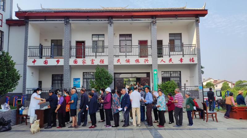 早上六点半,秦家塝村的老年村民们按医生安排,文明有序地排队接受体检,由医生叫姓名进行验血、B超、做心电图、验尿、量身高、称体重等检查。两天的体检时间,每天都有一百多人,老百姓得到了实惠,纷纷称赞国家政策好。