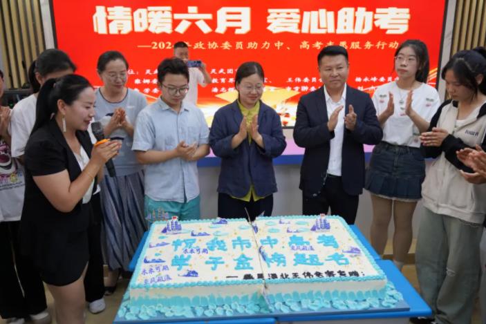 活动最后,大家共同分享了写有“祝我市中高考学子金榜题名”的蛋糕。通过此次活动,充分发挥我市政协委员人才荟萃、智力密集、联系广泛的优势,为高三及初三学子提供倾诉、交流的平台,帮助他们以更加积极的心态迎接考试。