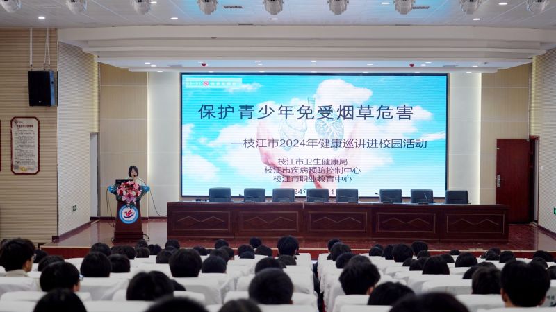 枝江融媒(通讯员 张行华 杨新)5月31日是第37个“世界无烟日”。为宣传烟草危害,传播禁烟知识,提高青年学生对烟草危害的认识,营造健康良好的生活环境,近日,枝江市职业教育中心在报告厅举办禁烟知识专题讲座,各班派代表参加活动。