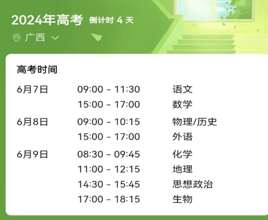 禁鸣时间:6月7日至6月9日上午7:30—12:30,下午1:30—6:00。
