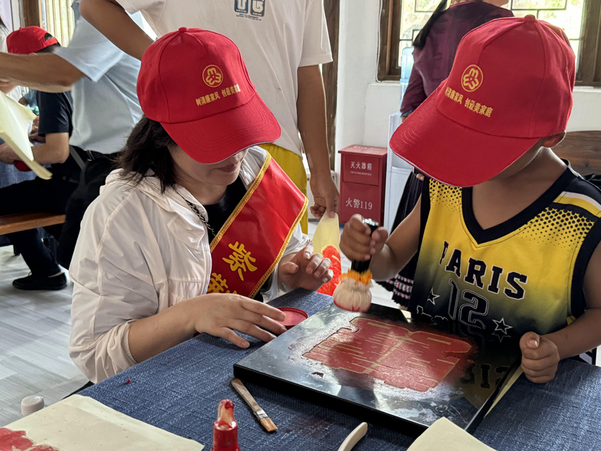体验非遗魅力,传承传统文化。拓印是我国优秀的非物质文化遗产,是中国书法赖于流传的基石,是千百年来文化传承的重要载体。拓印非遗体验,这不仅是对古老技艺的传承,更是弘扬民族文化,对民族文化的传播。在讲解老师的解读下,家长和孩子们深刻领悟了拓印的内涵,以及“福”、“禄”、“寿”、“禧”四个元素所代表的人们对美好生活的愿景,孩子们、家长朋友兴趣颇浓,纷纷上前亲身感受拓印的魅力。