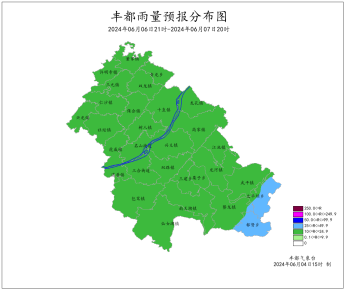 2024年6月3日16时至6月4日16时我县小雨,局地中雨。最大降雨量为11.1毫米(社坛苦竹沟)。最低气温7.7~18.9℃,最高气温12.3~22.6℃。丰都国家基本站雨量1.7mm,最低气温17.2℃,最高气温20.3℃。