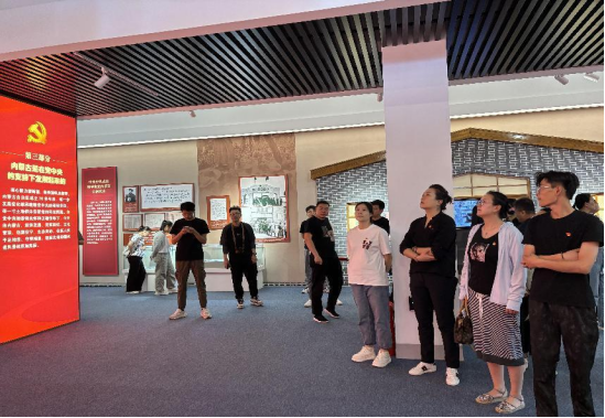 216幅图片、79块文字版、52幅图表、32件文献档案展品,展示了内蒙古在中国共产党的领导下实现民族团结、繁荣发展的历程……全体党员在讲解员的带领下,再一次开启了“六句话”的事实和道理的深度学习。大家认真聆听、驻足观看、相互交流,通过一件件史实、一个个故事、一张张图片,深切感受习近平总书记对内蒙古人民的深情厚爱和殷殷嘱托,进一步理解了习近平总书记赋予内蒙古的五大任务和全方位建设模范自治区的内涵,更加坚定不移地“感党恩、听党话、跟党走”,铸牢中华民族共同体意识。