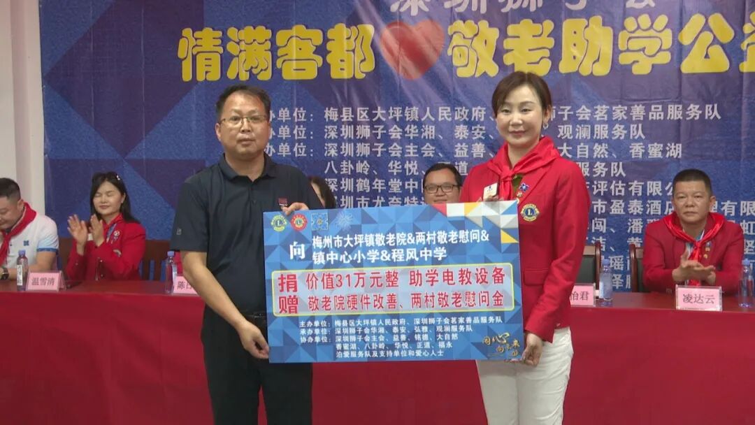 6月3日,“情满客都·敬老助学公益行”爱心捐赠仪式在大坪镇举行。深圳狮子会茗家善品服务队向大坪镇敬老院、大坪镇中心小学、程风中学开展助老助学活动,通过微改造基础设施、捐赠生活用品、教学器材等,助力大坪民生事业发展。