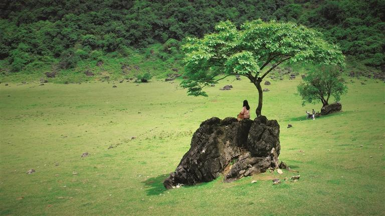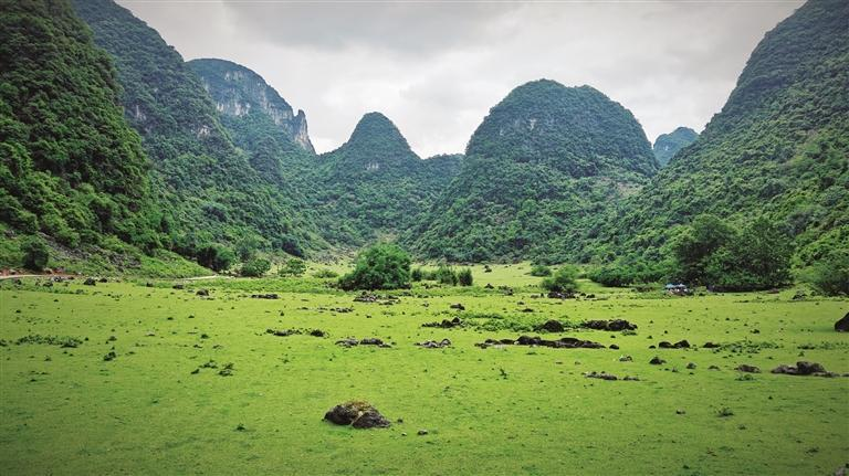 近日,笔者走进鹿寨县中渡镇大兆村石林葛麻?,看到群山环绕下120多亩绿油油的草地,俨然鹿寨版“阿勒泰”。