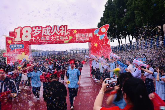 越过成人门,踏上成才路,走向状元门。在热烈的掌声和欢呼声中,同学们满怀激动与自豪,越过象征着成人与成才的成人门,向着人生的新阶段昂首阔步,勇毅前行。