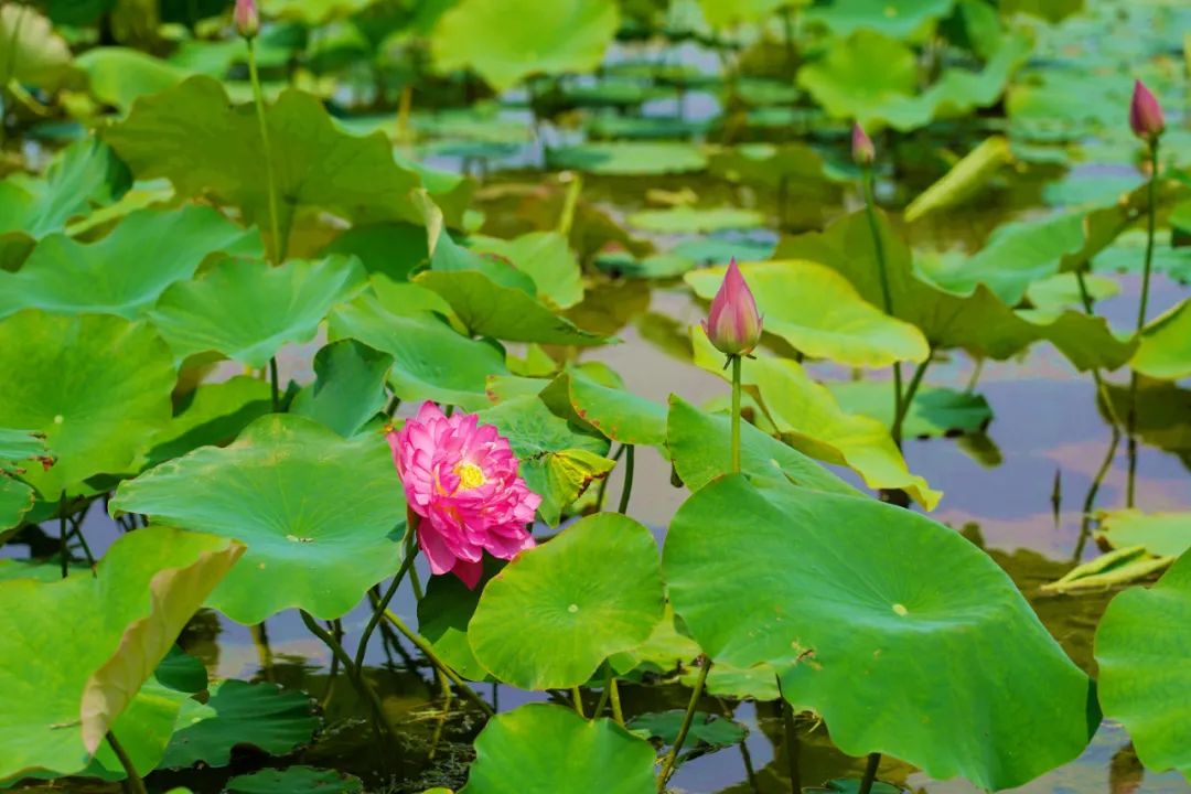 “早上来这里走一走心情很舒畅,有的荷花已经完全盛放,有的含苞待放,像水中仙子,特别有诗意。”市民眭先生时不时举起手机拍照,将眼前的美景定格。