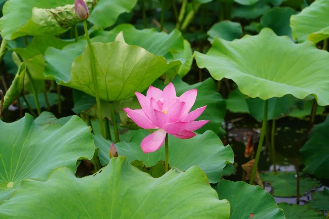 据了解,今年气候变化频繁,荷花生长略受气温影响。为保证荷花如期绽放,嘉北郊野公园今年调整荷花种植模式,在栽种初期每日派专员巡视,将荷花池内水位控制在20厘米,保证荷花萌芽温度大于10℃。