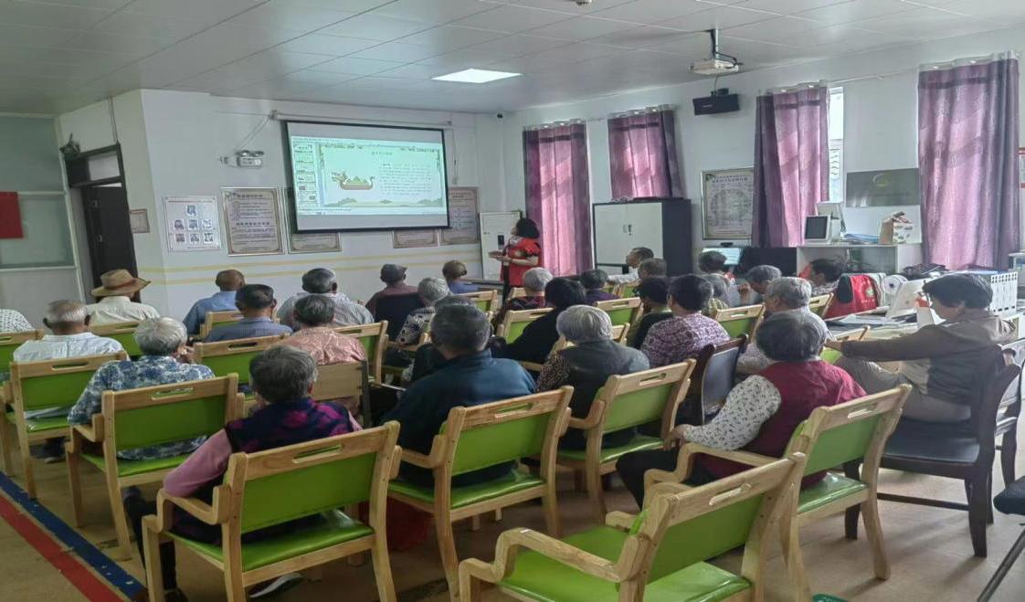 首先,义诊活动邀请了白马镇卫生院不同科室的医生为老年人提供问诊服务。医生为老年人量血压、测体重,耐心回答老人关切的健康问题,并发放科学养生宣传手册。接下来,志愿者以幻灯片演示形式讲解端午节起源与民间习俗;并和大家一起品味端午诗词,感悟传统文化内涵。之后,志愿者组织了包粽子比赛。现场有充足的食材和工具,居民共分成三组参与比赛。“快点哦,他们组都包了好几个了!”现场竞争激烈,也洋溢着欢声笑语。