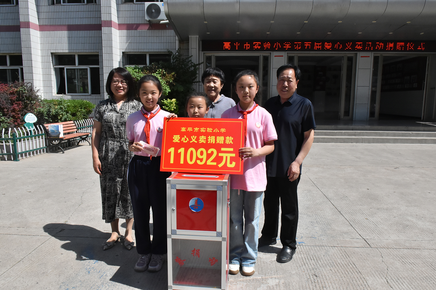 仪式上,孩子们将11092元的爱心义卖款投入到市慈善总会募捐箱。这笔爱心善款是市实验小学全体师生,将平时的玩具、文具、图书等工艺品义卖所得,用于救助我市特殊教育学校学生、留守儿童之家的孩子和需要帮助的人。