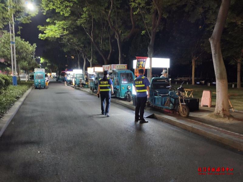 为确保保障工作达到预期成效,市城管执法局“宣管并行”,增加夜间人员力量,延长工作时间至夜晚十点,对夜间秩序持续监管,及时制止外摆、大声喧哗等行为,第一时间清理外摆商户,通过定时、定人、定点的“笨方法”保障广大考生的休息环境,助力考生在考场上发挥“聪明劲”。