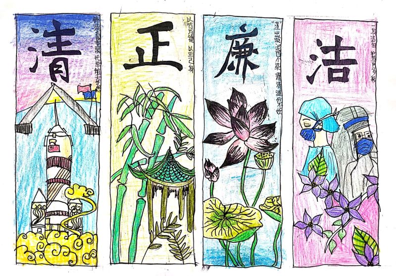 为推进廉洁文化浸润校园、滋养心灵,南岗路小学举行了“手绘莲心、书写廉洁”绘画书法活动,以古今中外廉洁格言、书画作品为素材,学生们挥毫泼墨,恣意创作,一幅幅清正廉洁的五彩图画、一张张正气高扬的秀美书法,犹如一棵棵洁净的种子在南小学子心中生根发芽,崇德尚廉蔚然成风。