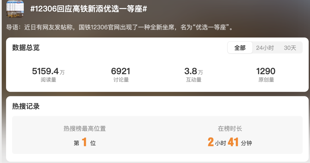 热搜第一!高铁推出一种全新坐席,12306回应!
