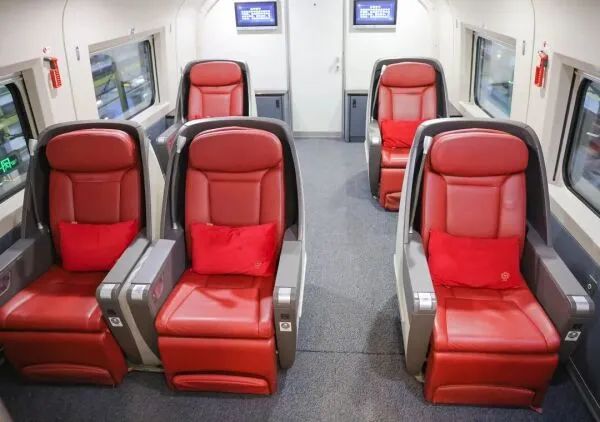 铁路摄影博主@秦浩博表示,优选一等座已经录入了12306系统,也在17编技术提升复兴号的头车上安装完毕,实际座椅和之前的专利图区别不大,采用每排座椅独立小窗的设置。