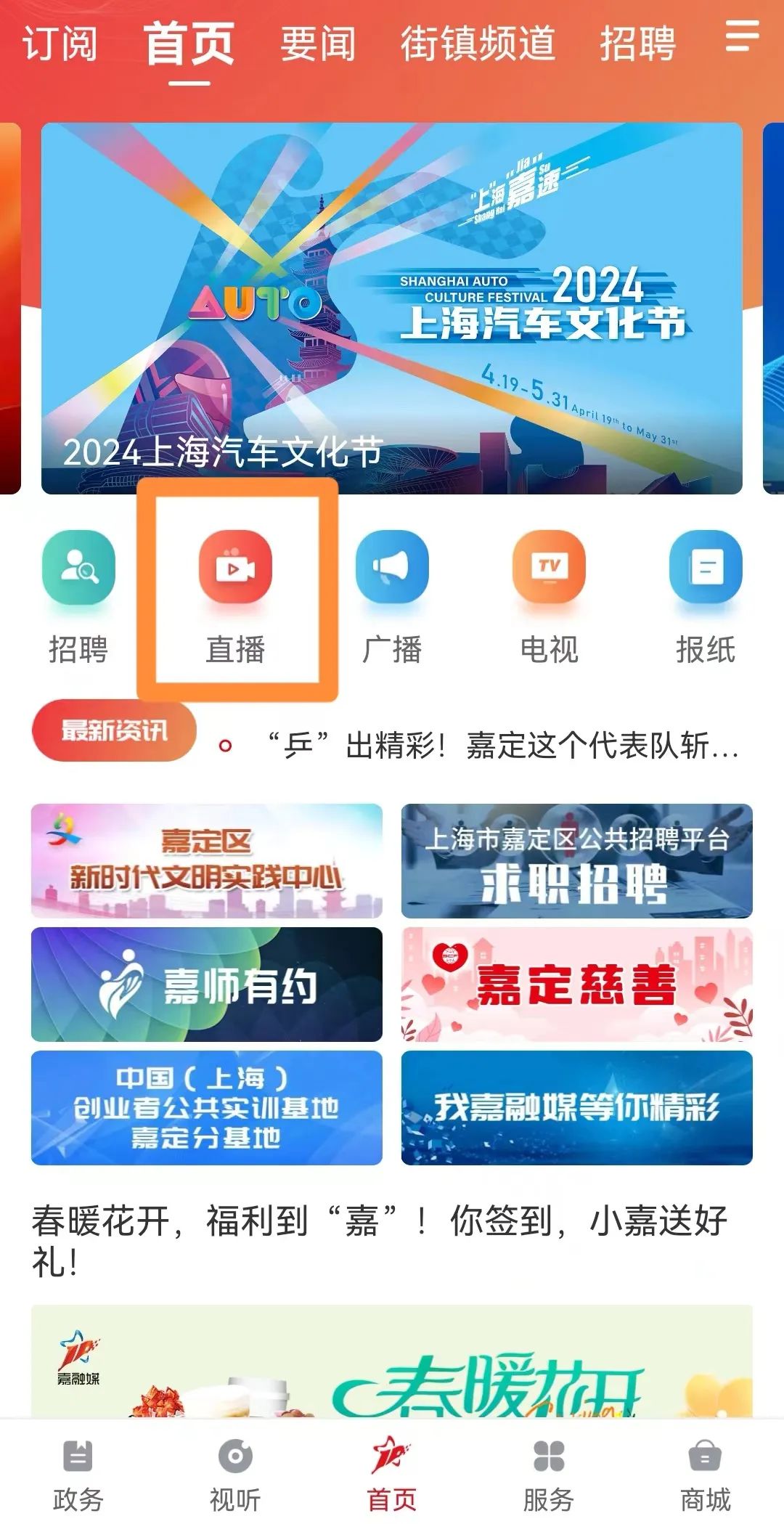 手机下载“上海嘉定”APP,在首页中,点击“直播”按钮进入《健康有道》的直播通道,可以边收看节目边留言互动。