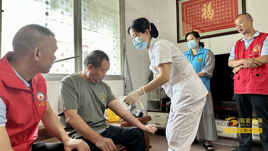针对行动不便的退役军人,工作人员还提供上门亲诊服务,为他们进行血压测量、抽血等各项检查服务,叮嘱其按时吃药,定期复诊,并为他们送上端午节日祝福。