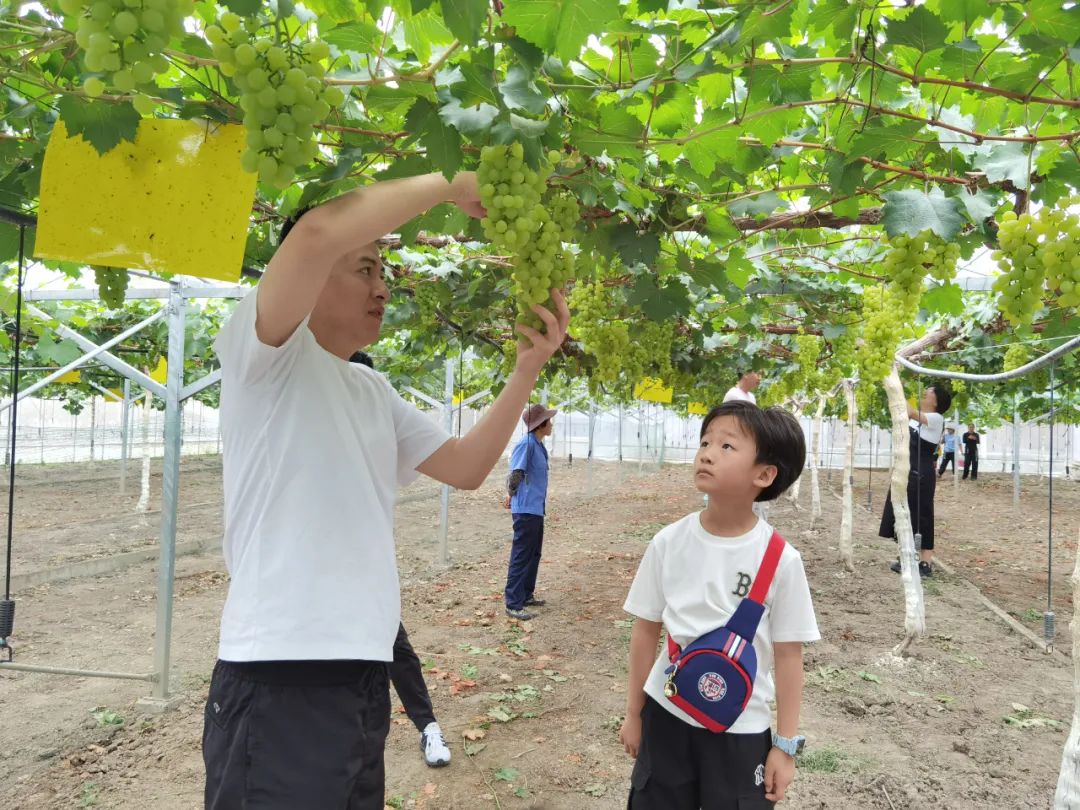 “把葡萄串剪下来的一瞬间是最兴奋的,我一共采了两篮,一篮是紫的,一篮是绿的。这里风景也很漂亮,我玩得很高兴。”刚刚剪下一串葡萄的王怀霆小朋友就迫不及待地摘了一颗放进嘴里。