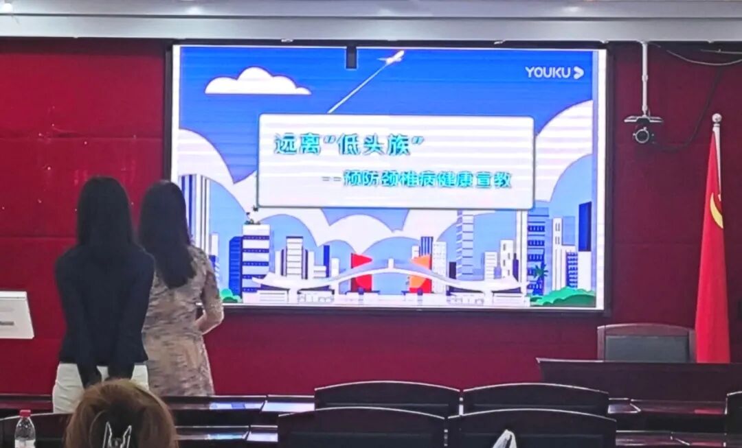 候诊人员观看预防颈椎病健康宣传视频