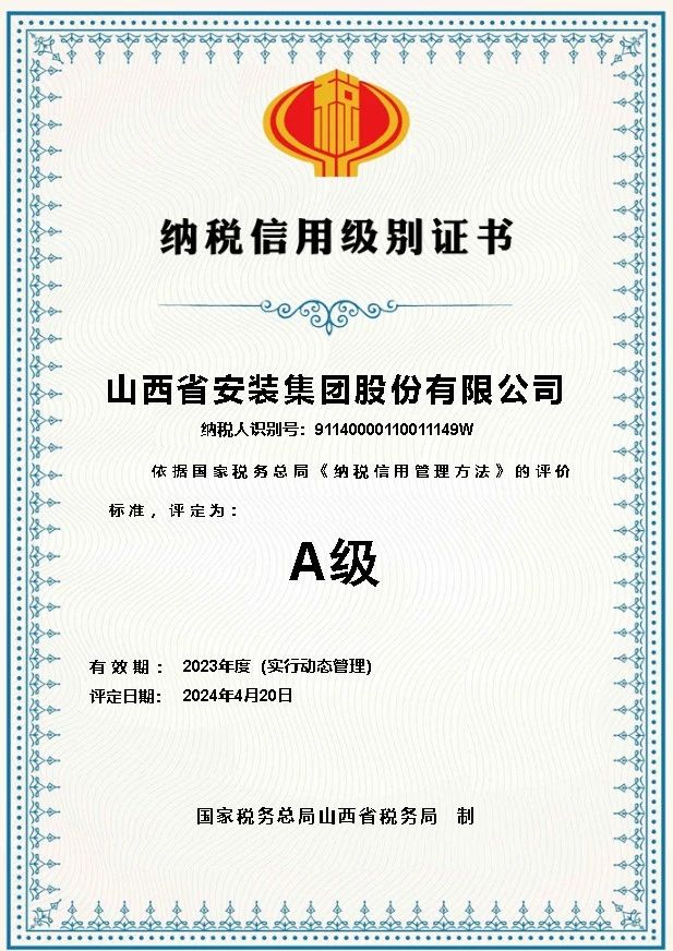 近日,国家税务总局山西省税务局公布了2023年度纳税人信用级别名单,集团获评“纳税信用级别A级”企业。
