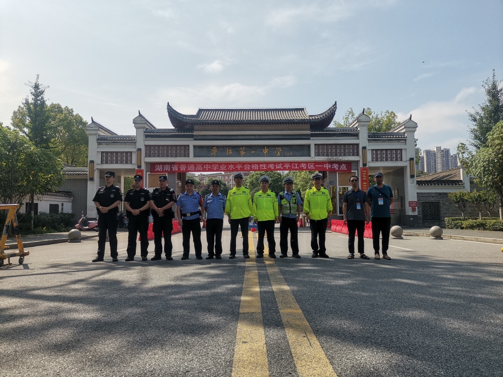 在平江一中、平江二中、平江职校三个考点前,交警拉开警戒线,布置交通管制设施,为考生有序入场规划线路;在关键路口,交警有条不紊指挥交通、劝导接送车辆,确保考生出入考场道路畅通;路面上,交警巡逻车辆行驶,随时准备为突发情况的考生提供应急援助服务。